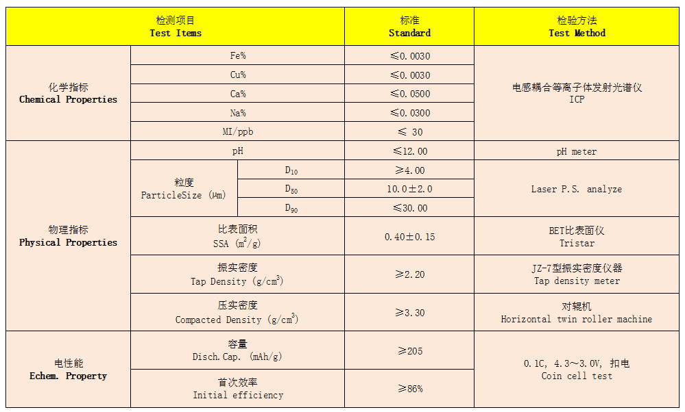 二次團(tuán)聚顆粒,高克容量,長(zhǎng)壽命;適合于高容量動(dòng)力和3C類圓柱電池