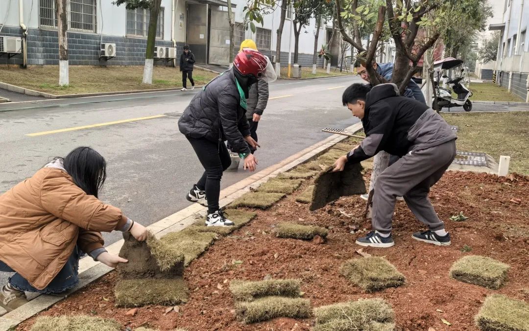 子公司金馳能源團委?踐行“綠水青山就是金山銀山”理念,組織青年在園區(qū)內開展種植樹苗、鋪種草皮等志愿服務行動,團員青年們揮鍬挖坑、扶苗培土、提桶澆水,種植樟樹苗100余棵,為園區(qū)增添一抹新綠。職能部門聯合團支部也在園區(qū)開展了園區(qū)衛(wèi)生清理等志愿服務活動。